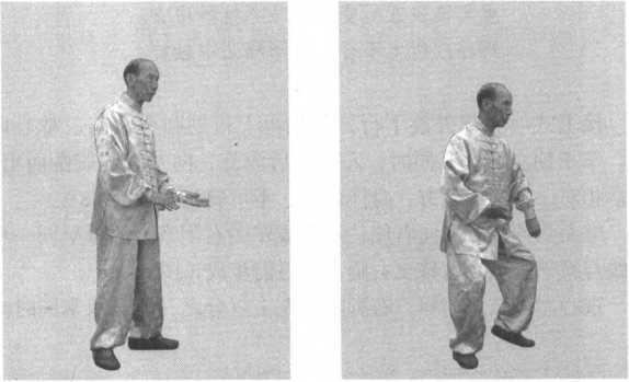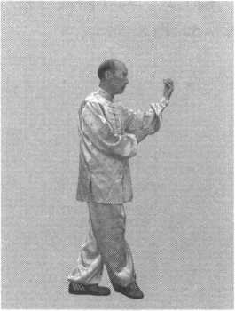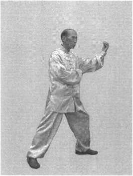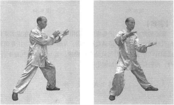 重心的左移右换,正是虚实、阴阳变化。马步是在虚实变化 中的过渡动作。太极拳最忌双重之病,凡虚实的转换,正是阴转 阳或阳转阴的表现。对沉肩坠肘的要求,其目的是令气血下行, 使身、步轻快而脚又要如树生根。