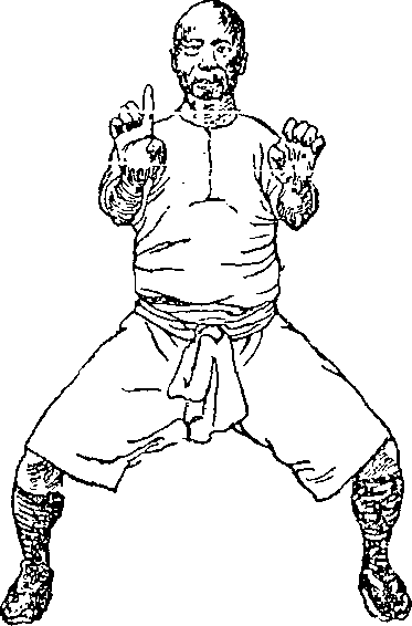诀日]一指三株抛睁手,肘起震出力悠悠; 右一撑天左虎爪,强筋健骨此良猷,