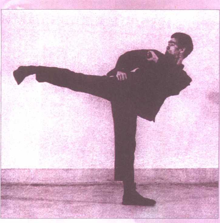 中段侧踢在实战或比赛中常饰演一个截击的角色,尤其是当对手咄 咄相逼时非常实用,最主要的原因是他所运动的是直线路径,所以正好 截击孤形路径的脚法或比腿短的拳击。这种踢法要想发挥良好威力,除 基本姿势及身体上下协调之外,还需要练就一种向前的压势,否则便浪 费了自身的体重及趋前的冲力了。李小龙认为侧踢中以中段的侧踢威力 最强大,威力之迅猛在群雄之上。这种踢法要注意的是提膝的速度要 快,否则反容易被对方以侧踢截击;反过来说,要截击对方的侧踢时就 要乘对方提膝之前的一刹那。凡是踢击(比拳击更值关注)不但需练就攻击 速度,回收的速度 也相当重要,皆因 每次踢击都会只留 一脚着地支撑(飞踢 更是两足离地),所 以意识中要明白每 次出脚背后所隐藏 的危机。