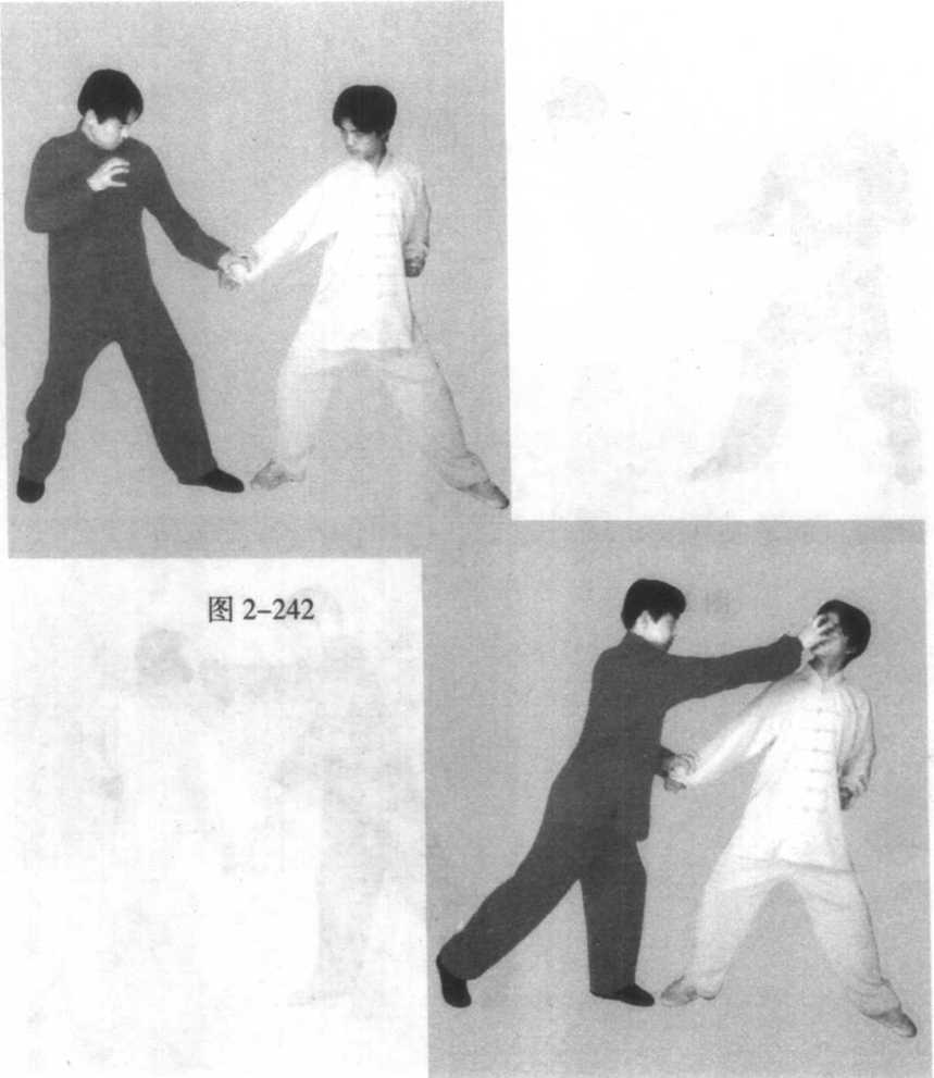 虎拳实战秘籍虎拳实战秘籍实战应用:虎拳实战秘籍虎拳实战秘籍1 .左势对敌。2 .敌向我打来,我先用左爪,扒臂破开(图2-242 )o3 .快速反击,再用右爪,猛劲盖打敌脸部(图2-243 )。