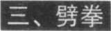 劈拳向下发力,拳 面向下,拳心向里,打 击敌之面门(图1-34)。掏拳向上发力,拳 面向上,拳心向里,打 击敌之心、阴、肋(图 1-35 )o