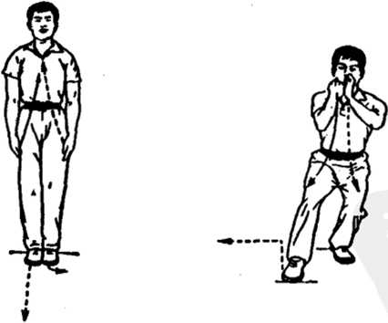 技击要领:上步以双拳格挡对方来拳。要求右腿借左腿上步 之势,挺膝伸直。双格拳发力刚猛,带有爆发劲。