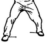 右脚收回,随即向右侧出一大步,两腿屈膝半蹲成马步。同 时两手成掌,两前骨内旋,使小指一侧朝下,掌心朝后,向裆下 猛切。掌指斜相对。眼看前方。(图5—3)