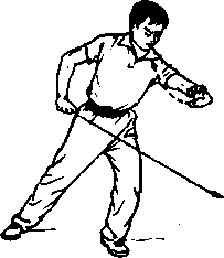 图2S技击要领:攻,可用右掌横击对方颈动脉处;防,可用 右掌格开对方从右边攻来的拳掌。挑掌与右拧腰须协调一 致。双摆掌要用抖劲。