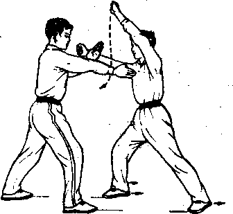 向上、尚前向乙方头部劈 出。眼看乙方头部。(图 15)