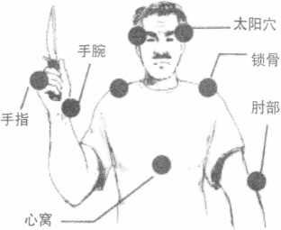 攻击对方拿着凶器的手关节。尤其是猛击手指旁边的手腕部分很有效。