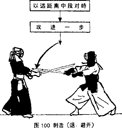 无论如何,击刺时若身体歪斜就无法做连续击所以击刺后应立即引进左足两臂放松连续做击面部只用手击刺时,如果身体不移动腰就会弯曲所以要用全身特别是用足击剌的意识来练习。