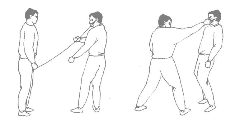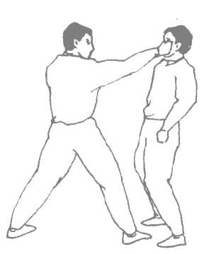 他毫不顾忌,挥起右手或左手,从胯外侧斜斜地划弧,甩 向对手的脸部!如果这是在酒馆里趁对手刚好不在意,两人站 得又近,他的挥手一击就会得逞“!啪”一声过后,对手将脸面 丢尽。图 1—