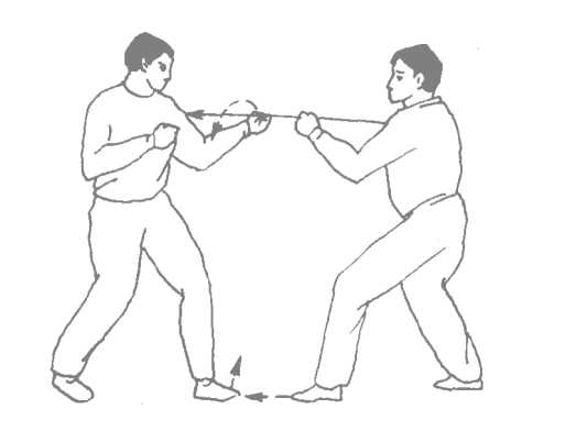比如,对方上右脚以右直拳打我,我上体右转,同时左臂 由左向右掩带,使其右拳之力如泥牛入海,消化得无影无踪。