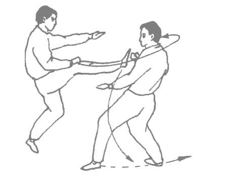 屈膝向胸前提起,脚底正对着对方的胸腹——这样的动 作意味着什么?意味着我即将发动脚功,用脚底去攻击对手!
