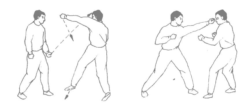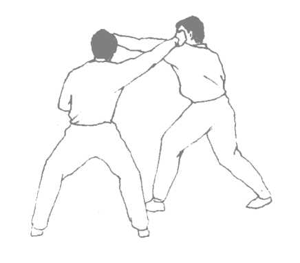 敌发动主攻,以拳打我,我急向后退一两步。(图