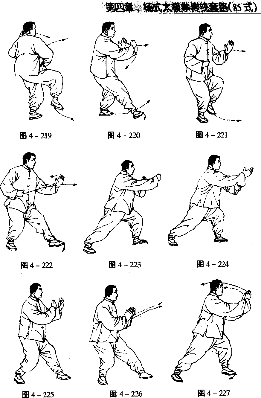 以下动作与第十二势“进步搬拦捶”动作3、4、5相同(图 4 - 220 ~223)。