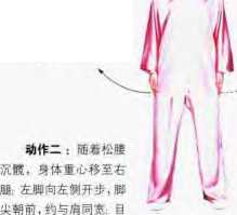动作三两臂内旋两掌分别向两侧摆起约与髓同高掌心向后目视前