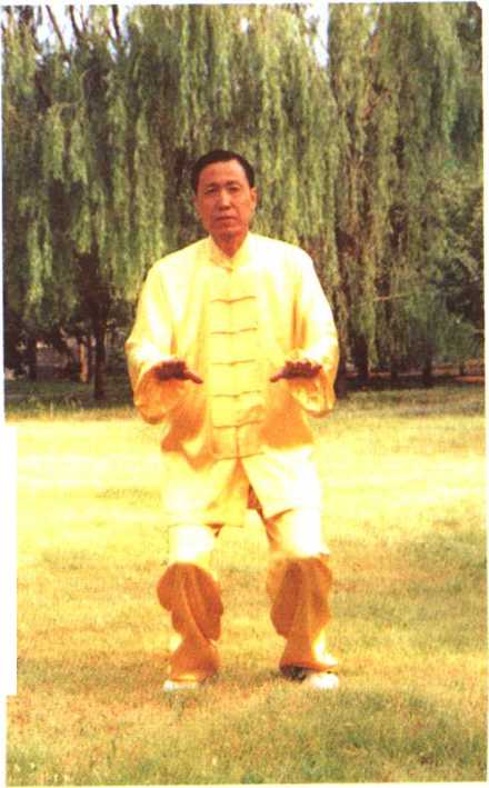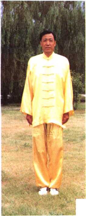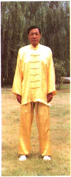 两脚并拢,自然站立,上体疏松正 直,尾闾中正,松腰敛臀,含胸拔背;头 悬顶,下颁微收;沉肩垂肘,两臂自然 垂放于体侧,手指自然弯曲;口唇微 闭,齿轻合,舌轻舐上领;呼吸自然,神 态放松,面部神舒松静,注意力集中, 敛意于预备动作;头项正直。眼平视前