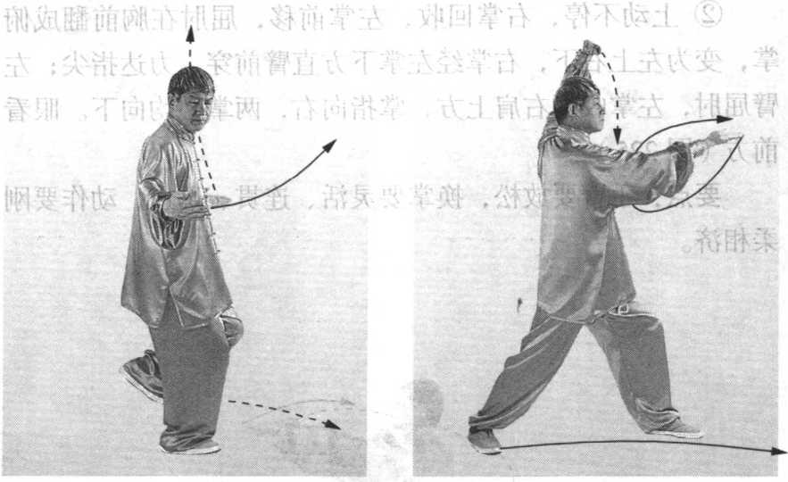 要点:手、脚动作要协调,同时到位,手臂要放松,换掌 要灵活、迅速,刚柔相济。