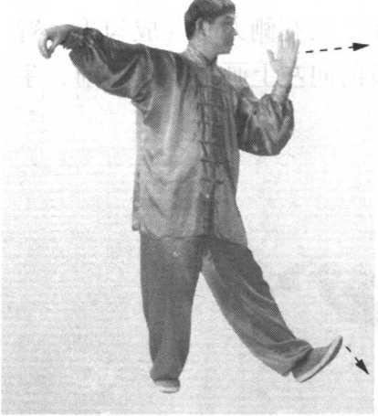 胛骨和锁骨连接在一起,背阔肌把胸椎、腰椎与肱骨连接在一 起,胸大肌把肱骨、胸骨和锁骨连接在一起。所以,做臂部活 动,同时又是胸和背的运动,单鞭动作就是由身体的这些部位 共同参与完成,经常练习此动作,不仅能增强关节的灵活性和 柔韧性,有效地防治肩周炎等肩臂部疾病,而且还具有理气宽 胸、疏筋活络、平肝利胆等良效。