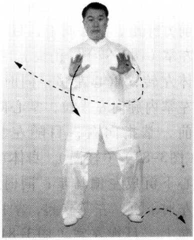 1. 初学者练习本动可以明显体会到太极拳“以腰为轴” 的规律性要点。