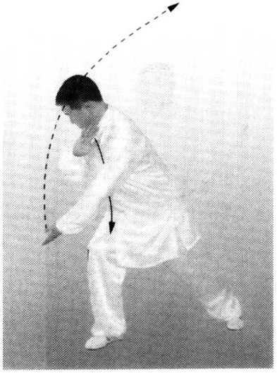 后靠时左臂要外 旋;右拳要沿立圆路线 撇打。