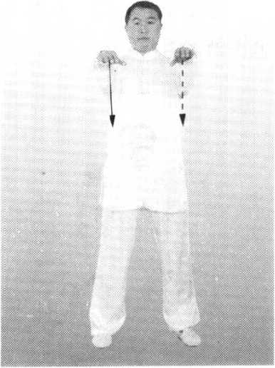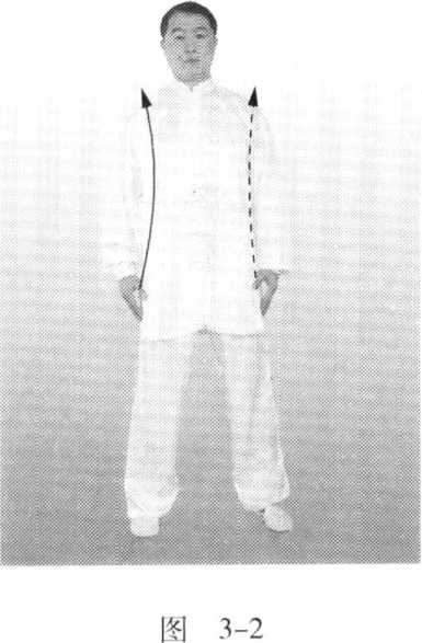 图3-3图3-3第三章 供您选择的简易太极拳健身功单势 :: 第三章 供您选择的简易太极拳健身功单势 :: 双手腕上领;松肩;两臂轻松上提(图3-3 )。