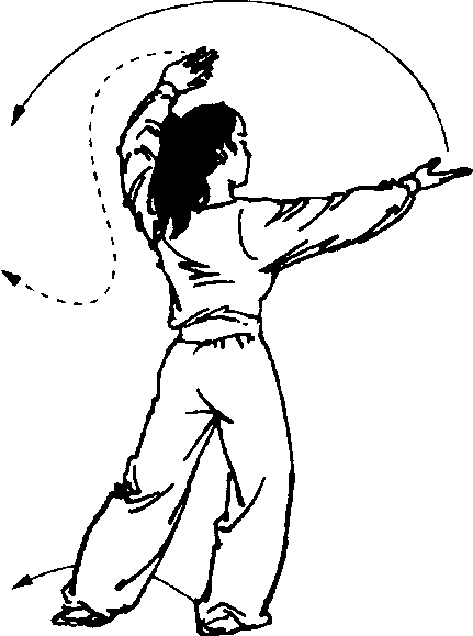 动作要领:翻身时两臂要走立圆,插步与翻身 动作要连贯,中间不可停顿。