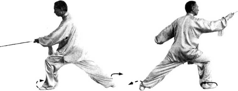 6.碾步:动作要领:以脚跟为轴,脚尖外展或内扣,或以脚前掌为轴,脚 跟外展。脚尖外摆为摆步;脚尖内扣为扣步。(图2-51、图2-52)
