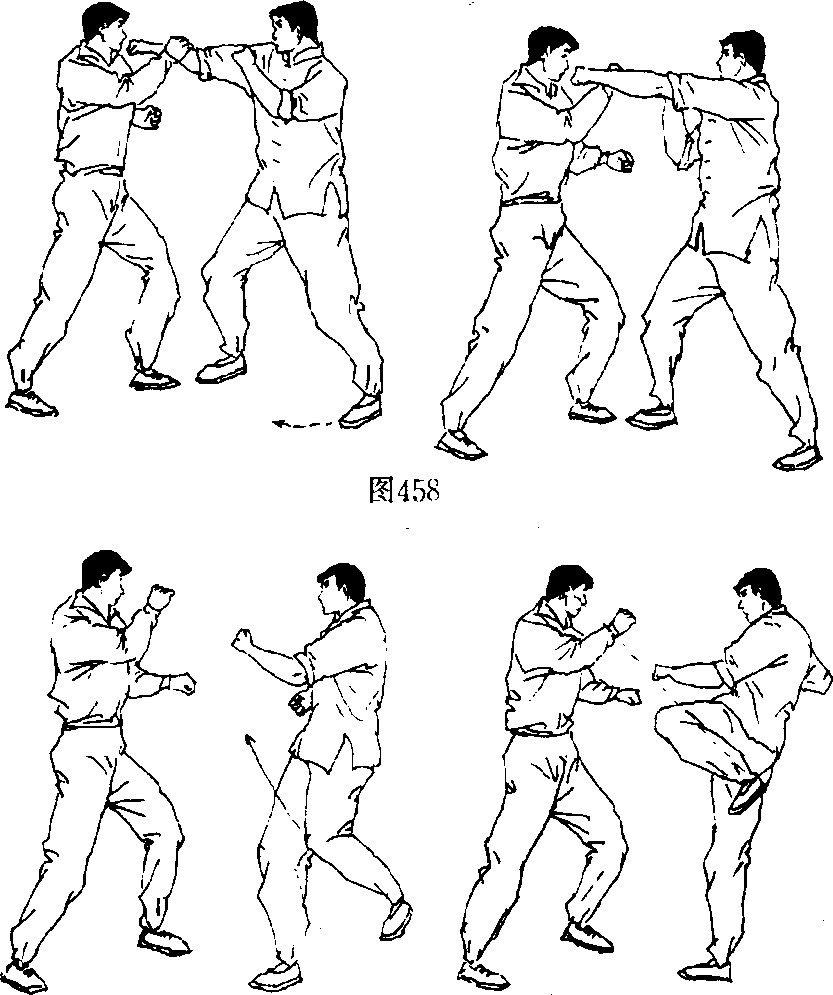 始(图457),当李小龙先发起攻击时,可先用右、左直拳去连