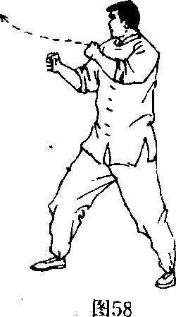 致命要害处(图58、图59)。同时还要充分利用强劲的腰力,且 即攻即收,使对手无从防守。