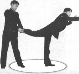起的腿也不能屈 膝。反压腿练习 可以充分锻炼髓 关节向后拧转的 灵活性,促进小 腿与大腿的股四 头肌、股直肌、 缝匠肌、骼腰肌, 腹股沟韧带的伸 展,加长了筋膜。