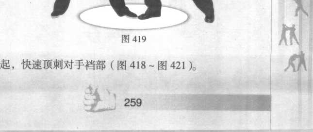 图415图415的活动量,以便于气血下行贯通,身体姿势开中有合、合 中有开,似开非开、似合非合。运用膝技出腿的同时,臀 部肌肉相交,以达劲气合一,稳固支撑腿,达到合髓敛气 聚劲而迅速出膝。