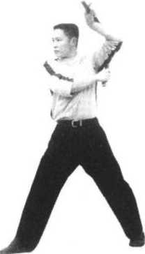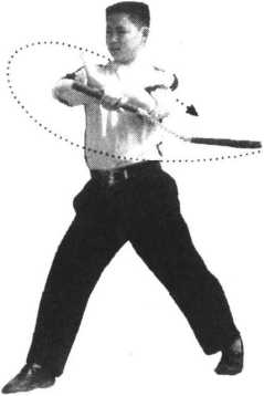 运棍手向腋下劈击回棍,以腋窝部位夹接来棍。