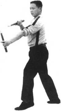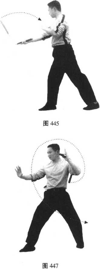 注 释:本套动作侧重于换把接棍手法的锻炼,应一气呵成。