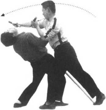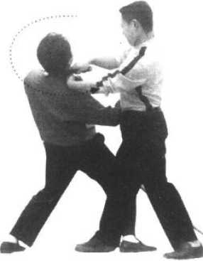 (2) 顺势近身以右手绞缠敌颈,并双手合力绞压。巨大的绞缠杀伤力足以制服歹徒。