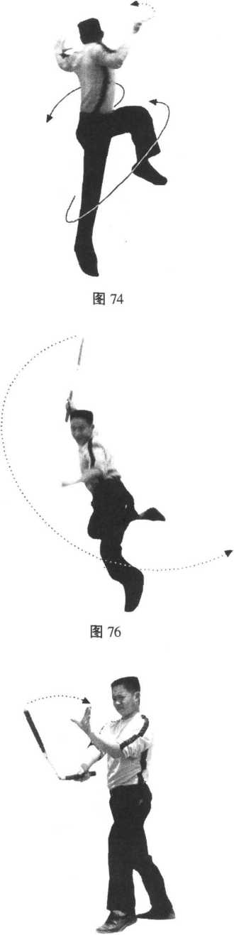 图73图75图77图78横家道南节梅技故汇京图79图79图80图80图79图79图80图80第9动1 .接上动,松开右手,左手运棍向前撩击,至大臂外侧卸力反弹(图81);2. 借反弹之力继续运棍向前劈击,至左腋卸力反弹,同时右手移至左腋前同把换手 接棍(图82);3. 松开左手,右手向前运棍撩击,至大臂外侧卸力反弹(图83);4. 借反弹之力继续运棍向前劈击,至右腋卸力反弹(图84);5. 借反弹之力,右手向前上撩击,使游离棍叠压于主棍上(图85、86);