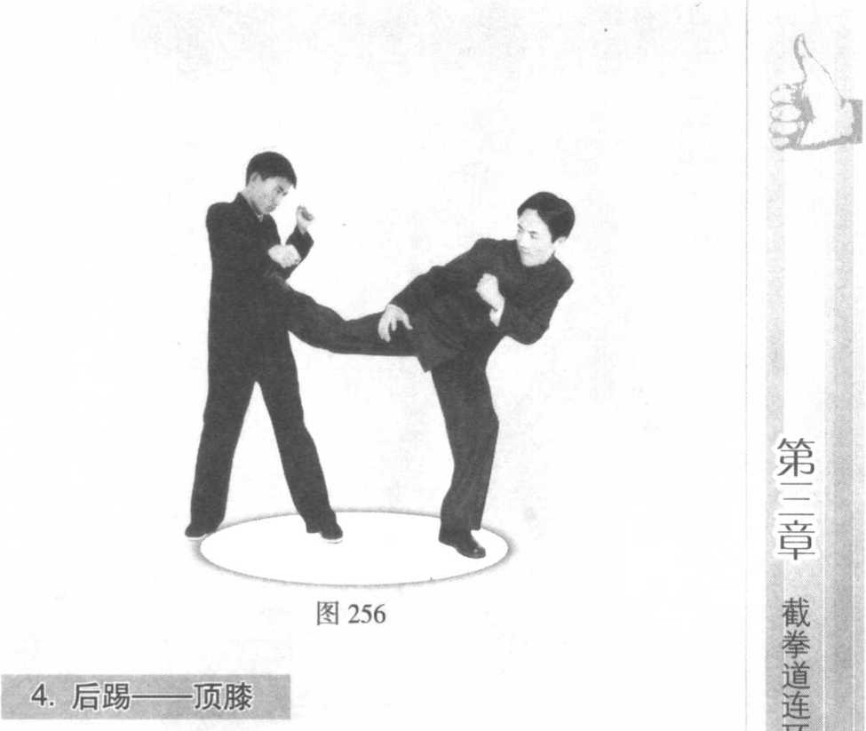 对手被迫快速抬手阻截,我方达到佯攻目的后, 后脚移动,迅速向 前,后脚落地,前脚 快速膝撞对手腹部。 对手遭遇反击而后 撤,我方收腿前进, 猛然一记侧踢,重击 对手胸、腹部(图 252 ?图 256 )o图252图252图252图252合步法闪躲而过对手扑空,欲转身攻击,我方左脚踏地合步法闪躲而过对手扑空,欲转身攻击,我方左脚踏地图257图257合步法闪躲而过对手扑空,欲转身攻击,我方左脚踏地合步法闪躲而过对手扑空,欲转身攻击,我方左脚踏地图257图257