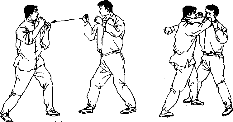 【动作说明】实战中,对手欲出拳击打时,实践者抢先移近,用后手抓 握对手小臂,再以前肘摔击对手面门(图502—图504)0图503 图504【动作要领】实践者动作要果断、迅速,移步、抓臂与肘击要连贯、流 畅,切勿动作脱节,给对手可乘之机。1 .格防接后肘击面【动作说明】实战中,对手摆拳侧击时,实践者前臂格防同时,移步后 肘击对手面门(图505、图506)。图505 图506? 187 ?【动作要领】对手发动攻击时,实践者判断要准确,反击要快捷,肘击 要快出快攻,一旦攻击得手,要接连给予对手猛击。