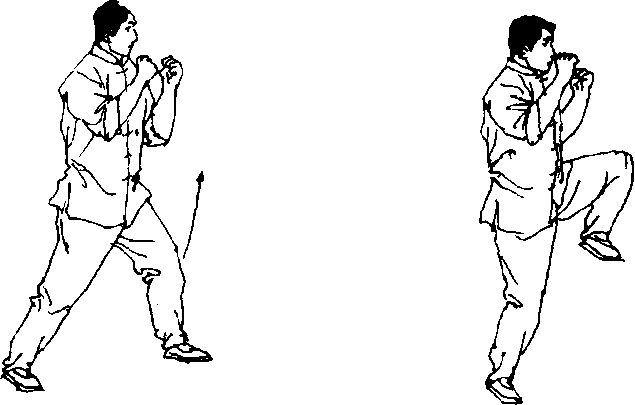 实践者反复进行顶膝动作练习。练习100?300次或2? 3分钟一组。