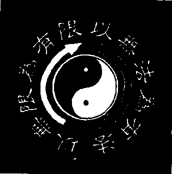 截拳道的标志是阴阳符号(图1)。它是把永恒的圆划分 为黑、白两部分。以黑、白代表阴与阳、夜与昼、雌与雄、善与恶 ……。并配以阴阳变化方向和“以无法为有法,以无限为有 限”的文字,阐明宇宙间矛盾(阴阳)既对应相互斗争,又统一 相互依存,并在一定条件下相互转化的辩证关系。图1