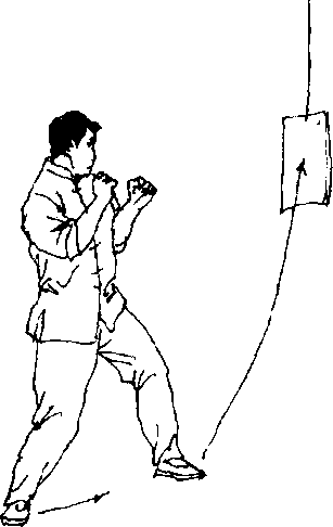 实践者将纸靶悬吊约与头部同高,进行扫踢练习(图 391、图 392)。图391图392图391图392练习可由慢渐快,还可将战术与其它技术混合练习。练习10?15次或2?3分钟为一组。其它训练方法可参考前后文进行。(三)实战举例扫踢在实战中较少施用,现简单举例,望实践者能举一反o
