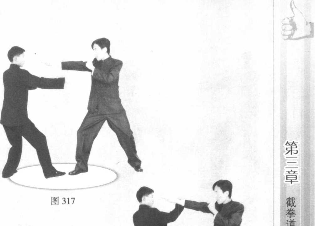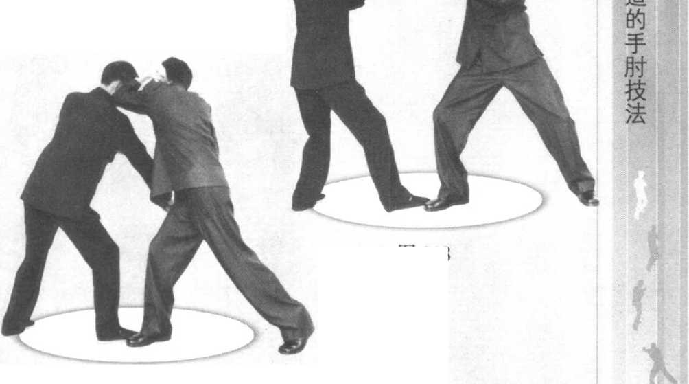 图318图318图319图319快速移动,擒住对手手臂,同时后手屈肘,猛击对手头部