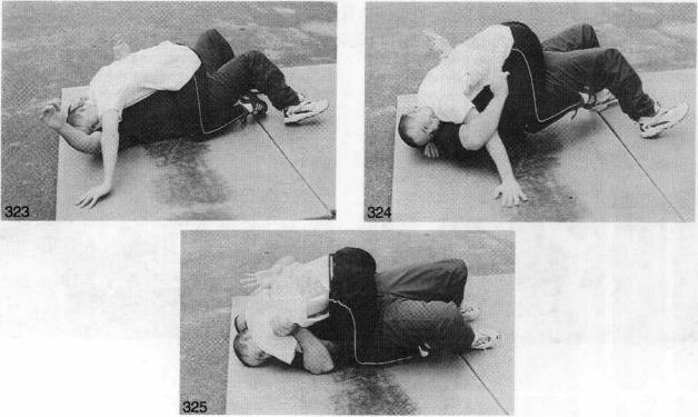 该练习与低位骑上势练习1的练习相同而这一次除了陪练者要将你翻下来外他还要力图搬开你的支撑手臂以破坏你的平衡(图323一图325)