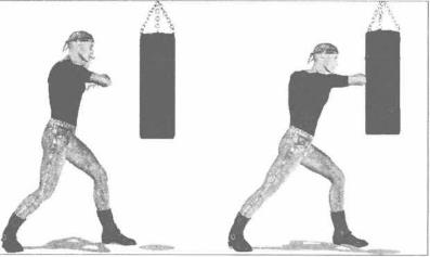 在身体正前方较近距离悬挂一个沙包首先按左前式基本格斗姿势站立令身放松,