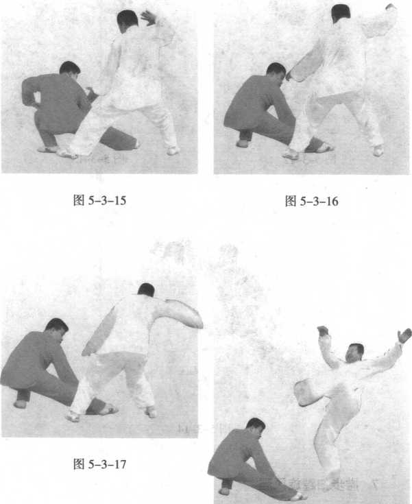右脚),躲过扫趙腿。(图5-3-15至图5-3-20)