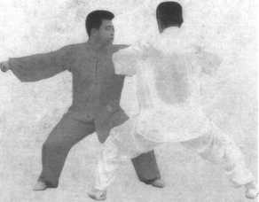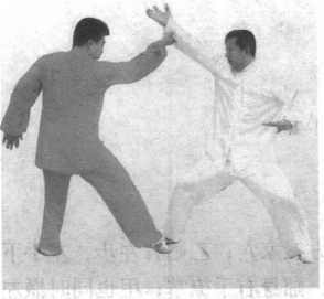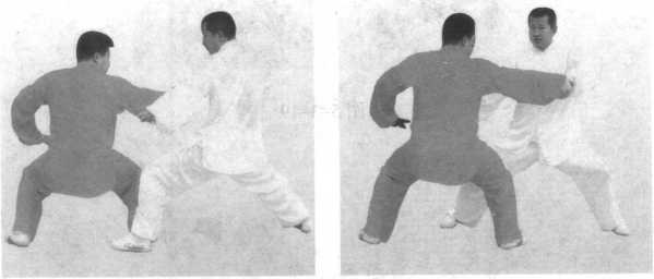 乙上右步,双手捋甲左臂。