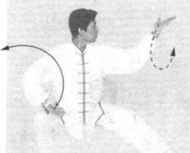 开.气向下沉。在轻柔婉转、流水浮云般缓慢缠绕的动势中, 寻找内劲的微妙变化,不可 有断续之处。