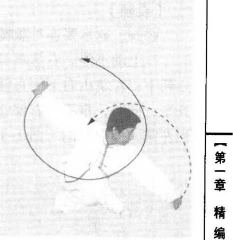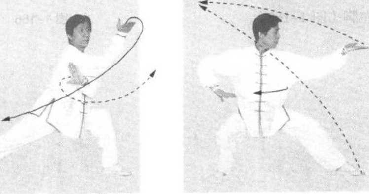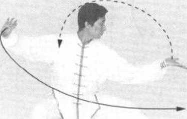 两臂缠绕,须由腰带动要意念右手抓捋对方右腕,左手 斜托对方右侧身后,欲将其顺势捋出。