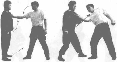 动作方法警察随意站立当警察被歹徒抓住胸部(图18),警察左脚上步左手从左至右抓握扣住歹徒右手腕右侧。同时警察身体左转(图19),右手朝歹徒右手下穿插住歹徒锁喉(图20),紧接右腿上步插到歹徒前脚后绊腿,顺势将歹徒摔按在地警察迅速左膝跪压住歹徒肋部解脱并控制歹徒(图21)图18图18图19图19图18图18图19图19图20 图21要点反抓扣腕快、穿插掌、转体锁喉、绊腿、膝跪压肋部连贯协调一致。