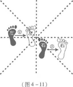 动作要领在戒备姿势基础上右脚向右横跨一步左脚跟进,恢复戒备姿势(见图4-11)。