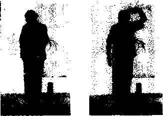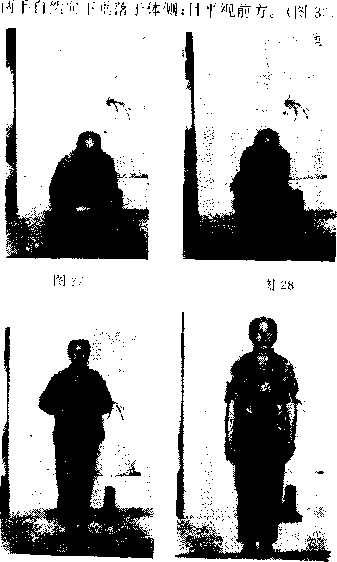 悟双手从后腰部往F运行.沿腿后面膀胱经线路行至 两脚跟后;同时屈膝蹲身“(图27)