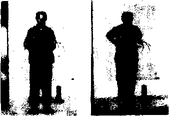 F两乒同时从脚内侧彳1":走.沿两腿内侧肾经线路经 裆部上提至瞑前,手心朝内呈环抱捧腹状;同时身体慢慢起 立。放松入静,静姚静守丹田 >(图29)
