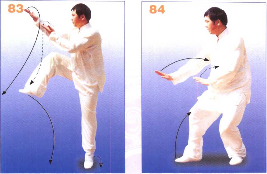 【要点】当身体向上跃起时,全身要形成合劲,不要散开。向下落 时,双脚要形成先后震落,成为双震脚。